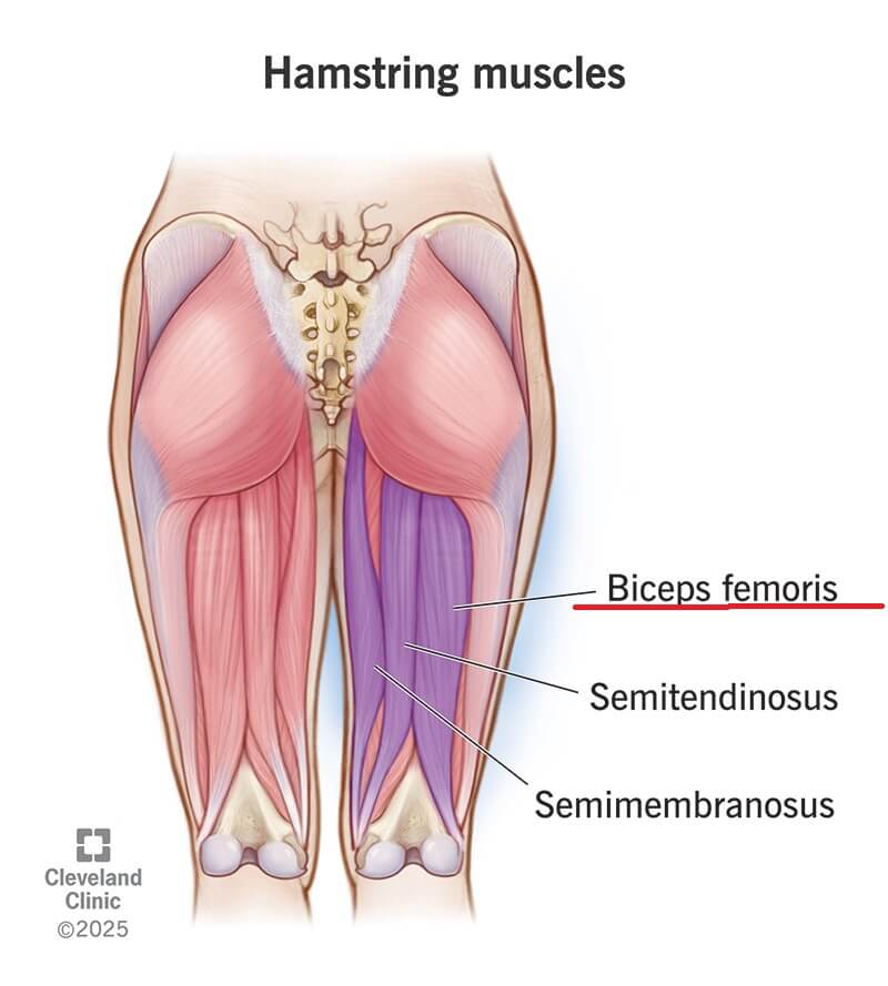 モモ裏の外側(大腿二頭筋)の過緊張です。