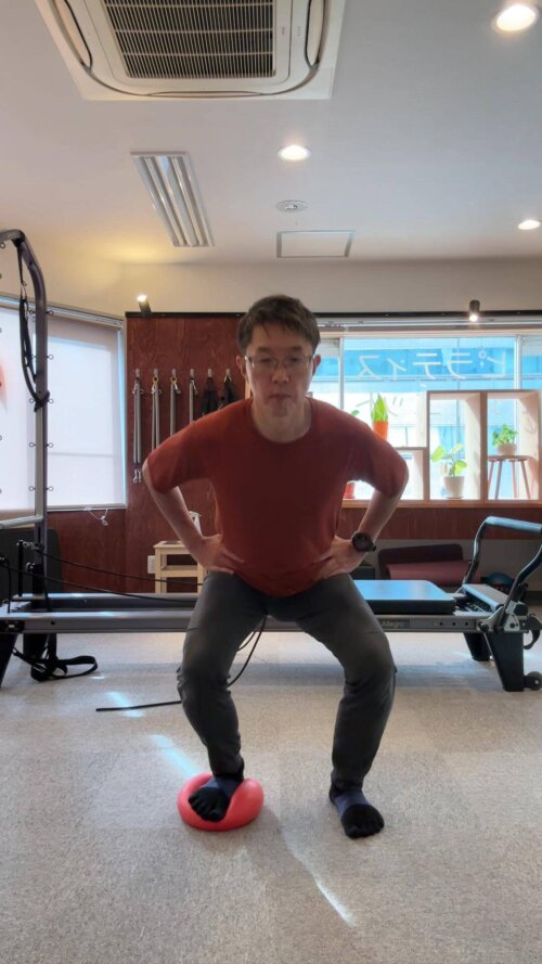 ピラティスボールを使うことで、より正しい重心感覚を身につけることができます。